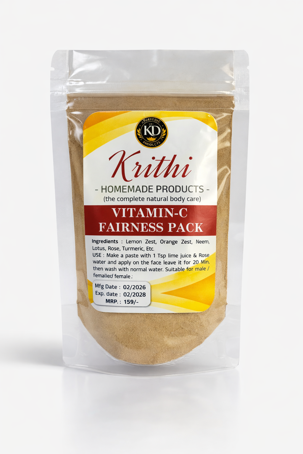 Revitalize your skin with our Vitamin-C Fairness Pack, designed to brighten and refresh dull, tired skin. Enriched with the power of Vitamin-C and natural ingredients, it helps reduce dark spots, improve skin tone, and enhance your natural glow. This nourishing face pack deeply cleanses pores, removes impurities, and leaves the skin feeling soft, smooth, and refreshed. With regular use, it helps reveal a clearer, brighter, and healthy-looking complexion suitable for all skin types.